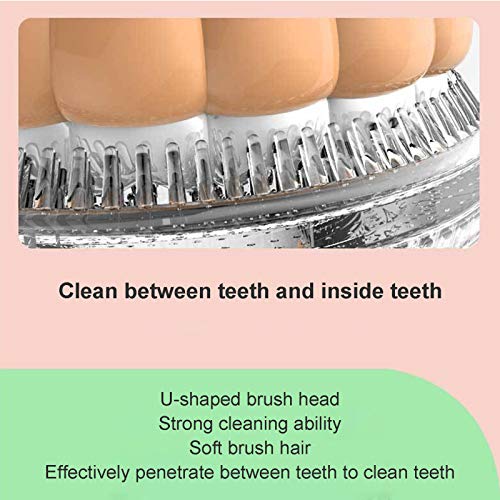 Testa a U unica a forma di U: il morso a forma di U è progettato per adattarsi alla forma della bocca, può avvolgere i denti a 360 ° per una pulizia completa dei denti. La testina dello spazzolino può essere staccata e pulita, realizzata in silicone di qualità, ecologica e sicura per l'uso.