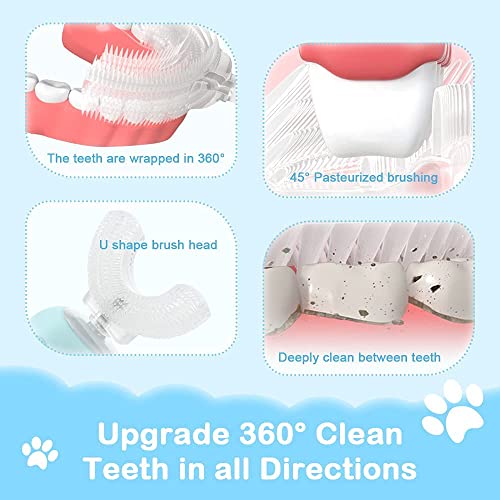 Spazzolini da denti per bambini a forma di U,Spazzolini da denti elettrici per bambini per età 3-12,Spazzola in silicone alimentare 360 ° Pulizia completa dei denti