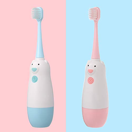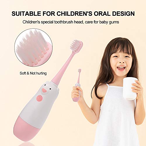 Spazzolini Elettrico da denti per Bambini,Rimuove la Placca con 2 Teste Spazzola Morbida, Batteria Caricata,3-12 Anni,Rosa