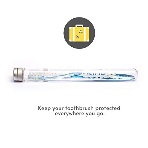 Spazzolino antibatterico con setole d'argento e manico blu.