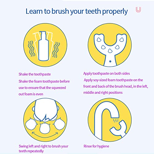 ❤ Facile da usare: gli spazzolini a forma di U rendono facile e interessante la spazzolatura dei denti dei bambini. Spremere il dentifricio intorno alla spazzola e poi mettere all'interno della bocca dei bambini e semplicemente oscillare da sinistra a destra.
