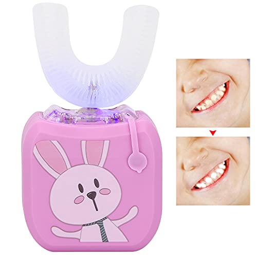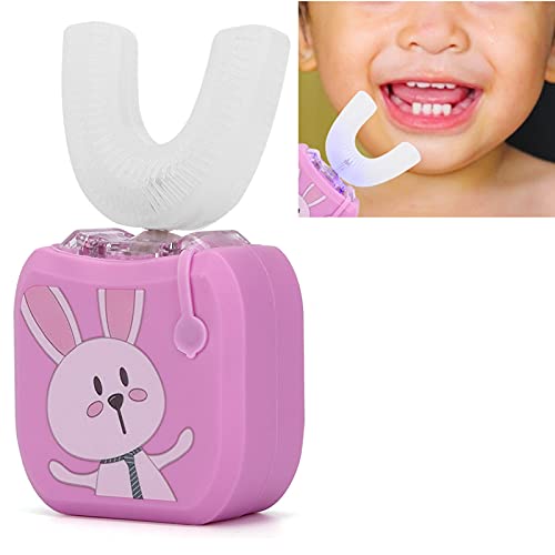 Spazzolino da Denti Elettrico Ultra Sonico, Spazzolino da Denti Elettrico Detergente per Bocca a Forma di U da 360 Gradi Testina Morbida in Gel di Silice per 8-15 Anni(rosa)