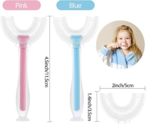 Spazzolino da denti a forma di U per bambini, 2 pezzi e 2 testine in silicone di qualità alimentare 360 rimovibile a forma di U, massaggia le gengive e fornisce una pulizia completa manuale (Age2-6)