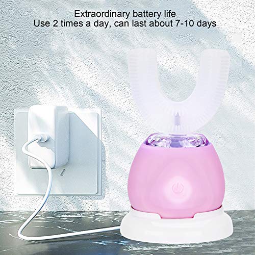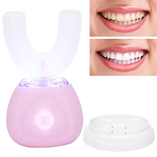 Spazzolino da denti a forma di U, spazzolino elettrico ad ultrasuoni intelligente per il bambino adulto(rosa)