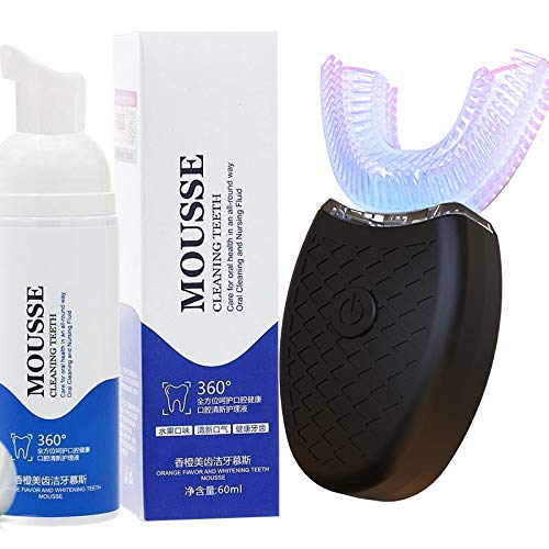 Spazzolino elettrico per adulti ad ultrasuoni automatico a forma di U, detergente impermeabile per denti per la pulizia dei denti, kit sbiancante con dentifricio, sbiancamento dei denti (nero)