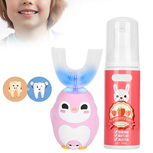 【Fai in modo che i bambini adorino lavarsi i denti】 Ai bambini non piace lavarsi i denti? Lo spazzolino elettrico a forma di U è un ottimo strumento per coltivare le abitudini di spazzolatura dei bambini. Con il simpatico pinguino dal design dei cartoni animati, i bambini lo adoreranno a colpo d'occhio. È per i bambini che non sanno come spazzolare.