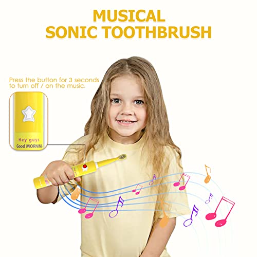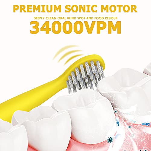 Spazzolino Elettrico Musicale per Bambini, Spazzolino Intelligente Ricaricabile per Bambini da 3 a 12 Anni Con Timer di 2 Minuti, 3 Modalità, 4 Testine (Giallo(Il pacchetto potrebbe variare))