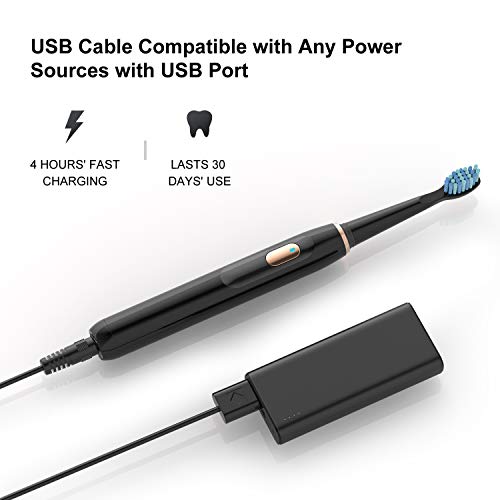 Ricarica 4 Ore per 30 Giorni: Spazzolino elettrico ricaricabile USB supportato dalla ricarica con cavo DC, LED che indica la batteria scarica e lo spegnimento automatico dopo una carica completa, compatibile con qualsiasi fonte di alimentazione.
