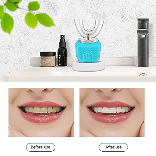 Spazzolino Ad Ultrasuoni Automatico, Spazzolino Elettrico a 360 ° per La Cura Orale Dello, Spazzolino da Denti per Ricarica, IPX7 Impermeabile per Adulti Bambini (Blu)