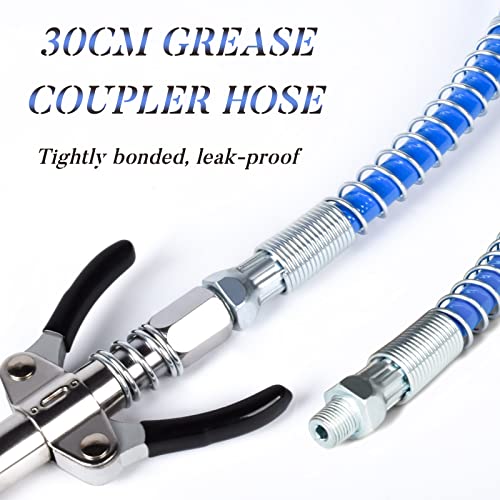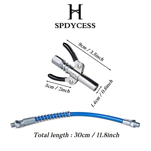 SPDYCESS Accoppiatore per Grasso G Coupler G Grasso Accoppiatore 10000 psi, Bloccaggio e Sgancio Rapido, con Tubo da 30 cm, per Ugelli per Grasso Dritti e Curvi M6 M8 M10 M12 Standard Nazionali