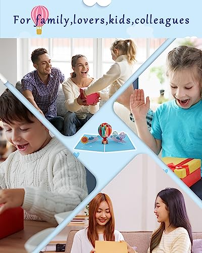 SPDYCESS Biglietti di Auguri,Cartolina D'auguri 3D Carta Regalo Anniversario Fatta Mano Compleanno Natale Matrimonio Card con Busta per Donna Uomo Complimenti (Mongolfiera, Sole, Nuvola)