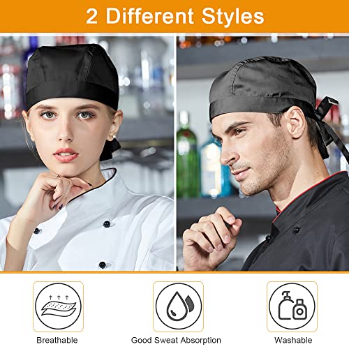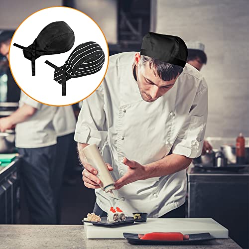 SPEACOUR 4 Pezzi Cappello Cuoco Regolabile Cappello Cucina Giapponese Berretto da Cuoco Cappellino da Chef Bandana Cucina Berretto da Lavoro per Adulti, Fornai, Hotel, Ristorante - 2 Neri + 2 Rigati