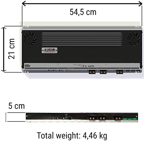 SPEAKER, 1 amplificatore stereo compatibile con AUDIO SYSTEM F2-600 F2 600 2 canali classe ab 2 x 460 watt rms a 2 ohm 3000 watt max spl cofano auto, 1 pezzo