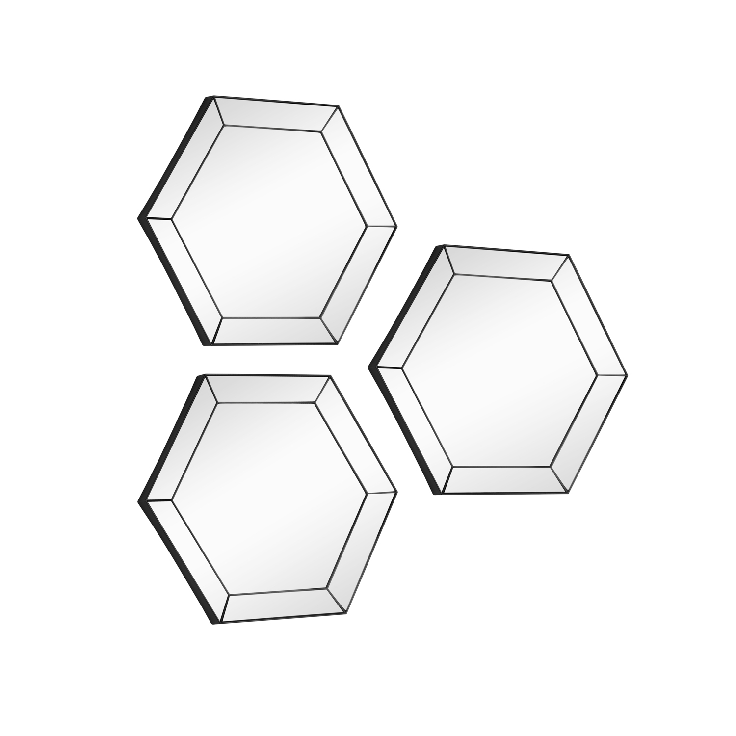 Scopri la magia della decorazione con il set di 3 specchi da parete Alexa! Questi fantastici specchi esagonali con bordo in plastica nera trasformano istantaneamente qualsiasi spazio in un ambiente elegante dallo stile contemporaneo. Con il loro design unico, questi specchi aggiungono profondità alla parete ed un tocco di audace raffinatezza. Posizionali insieme, per creare un'impressionante composizione artistica, o distribuiscili separatamente per un effetto più sottile e affascinante. Dimensioni: 30x26x2 cm.