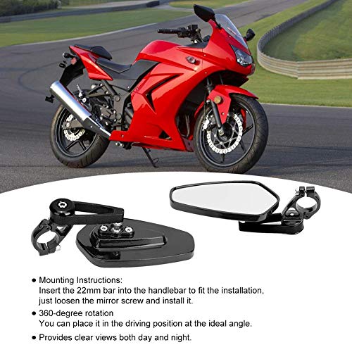 Conveniente da installare: facile da installare e gli accessori di montaggio completi sono forniti nella confezione, inserire la barra da 22mm nel manubrio per adattarsi all'installazione, allentare la vite dello specchio e installarla, risparmiare tempo ed energia.