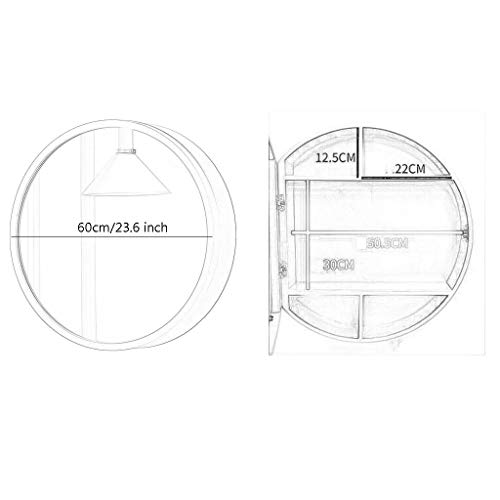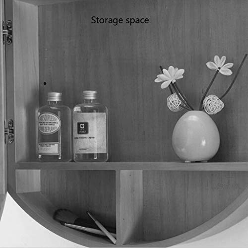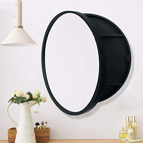 Specchi Specchio Rotondo Armadietto Bagno di Stoccaggio Specchio Mobiletto del Bagno Storage con Mensola A Muro in Legno Solido Tondo Parete A Specchio Appeso (Color: Black, Size: 60cm/23.6 inch)