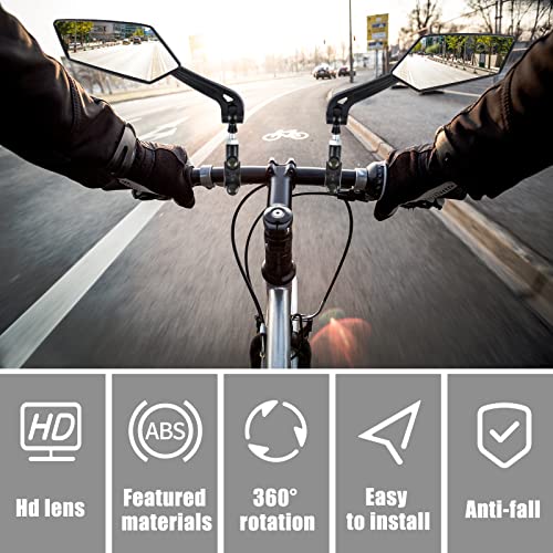 Specchietti Bici 1 Coppia HD Specchietto Retrovisore Bici Ruotabile di 360 Gradi Nero Specchietto Monopattino Elettrico Universali con Accessori di Montaggio