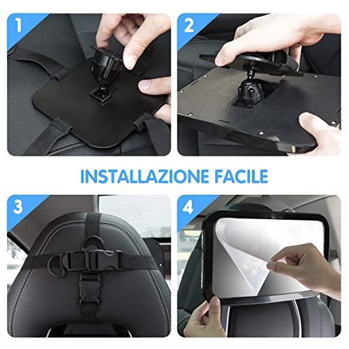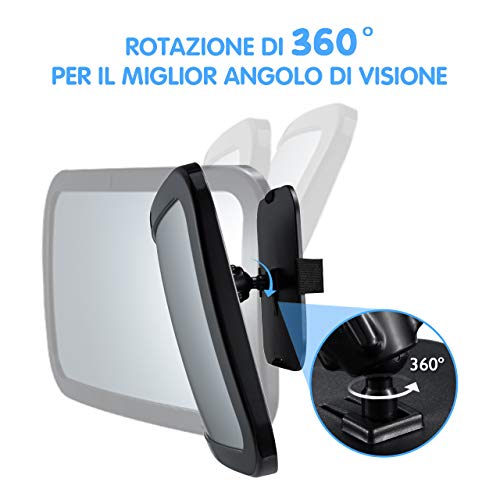 Specchietto Retrovisore Bambini Grande, Specchio Auto Bambino, Specchietto Regolabile Neonato per Sicurezza Poggiatesta Posteriore Auto, Specchio Retrovisore Interno per Auto Sedile Posteriore, Nero
