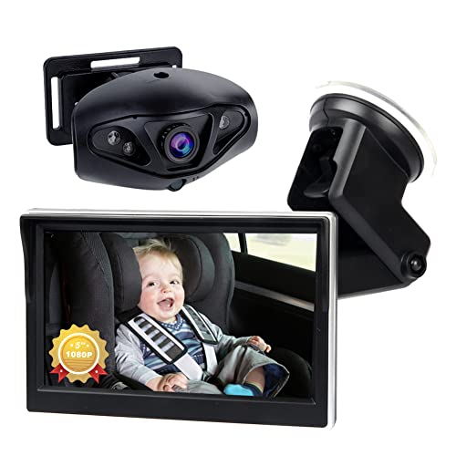 Specchietto Retrovisore Bambini, Telecamera Auto Bambino con Visione Notturna Regolabile 360 °, Monitor del Sedile Posteriore di Sicurezza con Schermo 5", Monitor Videocamera per Infantili Kid Toddler