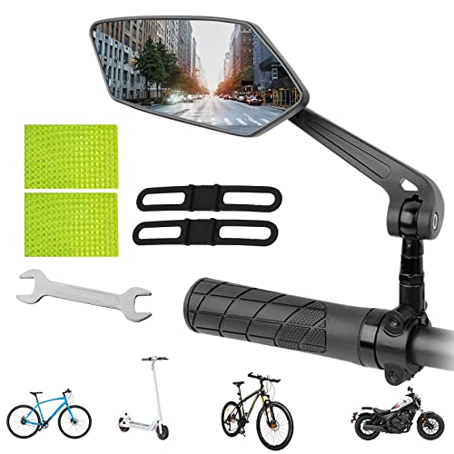 Specchietto Retrovisore Bici Sinistro Specchietti Regolabile 360°di Rotazione Specchio Cinturino Universale HD Girevole Regolabile 2 Adesivi Riflettenti 2 Cinturino in Silicone per Bicicletta