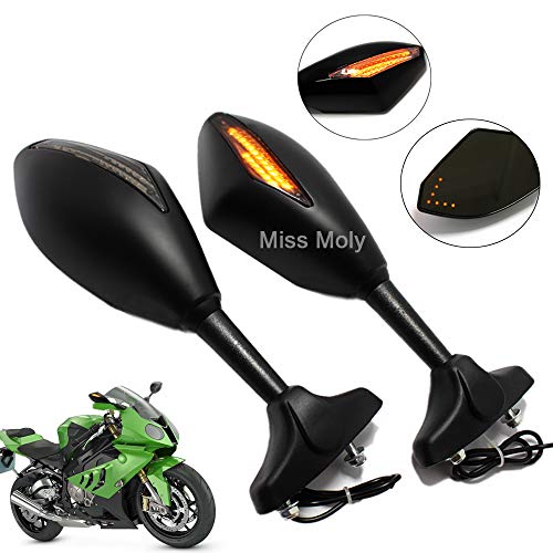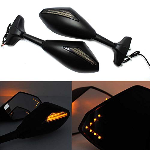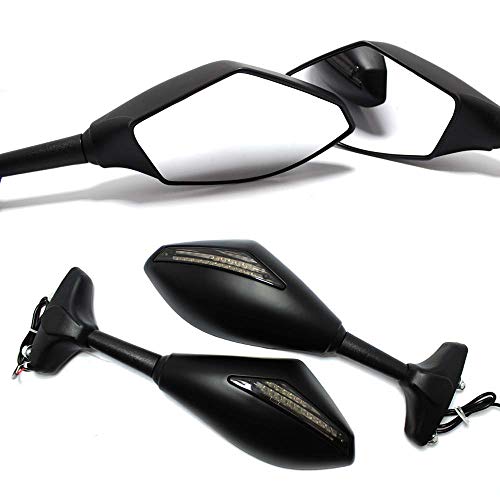 Specchietto Retrovisore per Moto con Indicatore di Direzione a LED Indicatore di Freccia Per CBR GSXR YZF(Nero Opaco + Lente Fumo)