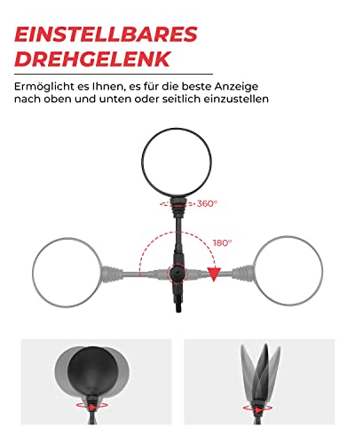 Specchio pieghevole girevole a 170° e regolabile per una migliore visibilità, ottimizza la visibilità con il grandangolo della bicicletta. Specchi flessibili per angoli ciechi che consentono una completa manovrabilità in tutti gli angoli del veicolo, in modo da essere sicuri della facilità di guida.