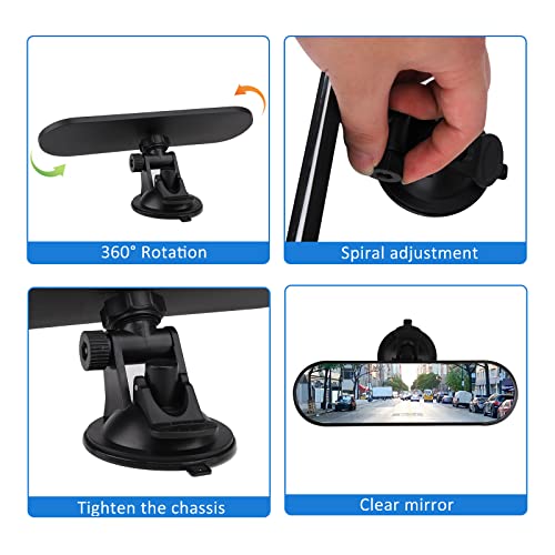 ASPIRAZIONE ADESIVA - Lo specchietto retrovisore da 220 * 65 mm può resistere a 13 libbre / 6 kg di gravità, mentre è saldamente fissato al parabrezza, con una forte aspirazione, stabile e stabile. Aspirazione potente come nuova, anche dopo molteplici attività di rimozione e reinstallazione. Quando c'è polvere sul fondo della ventosa, può essere pulita con acqua o un panno umido non tessuto.