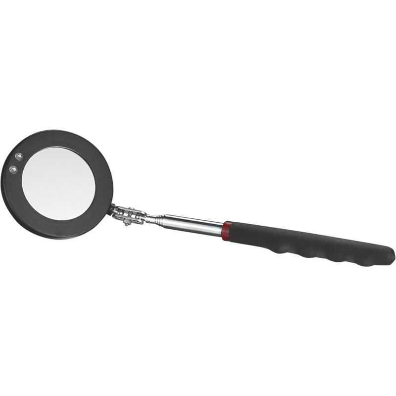 Specchietto telescopico snodato a led 056 L. Specchio in vetro resistente alle rigature. Bordo paraurti in materiale plastico. 2 LED per evitare di creare ombre sulla zona da osservare. Specchietto telescopico snodato a led 056 L. Specchio in vetro resistente alle rigature. Bordo paraurti in materiale plastico. 2 LED per evitare di creare ombre sulla zona da osservare. Doppio snodo regolabile. Corpo in acciaio inossidabile estensibile. Impugnatura antiscivolo. Diametro esterno compreso bordo: 75 mm. Diametro interno specchio: 51 mm. Lunghezza massima 875mm.