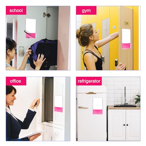 Specchio con Armadietto Magnetico, 17 x 14cm Piccolo Specchio per Armadietto in Vero Vetro Specchio Magnetico per Studenti per Armadietto Scolastico Frigorifero Bagno Ufficio Armadietto (Rosa)