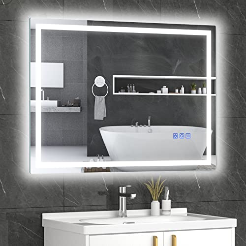 [rifinito in modo eccellente] ▶ Lo specchio è bello, grande e l'illuminazione fornisce una luce di gran classe nel bagno. Lo specchio con striscia luminosa a LED ha un voltaggio costante e un design ottico professionale, non presenta sfarfallii e quindi protegge gli occhi. Lo specchio da bagno è realizzato in vetro cristallo che riflette meglio del tradizionale vetro argentato e viene fornito con una pellicola antideflagrante per una maggiore sicurezza.