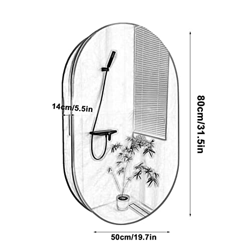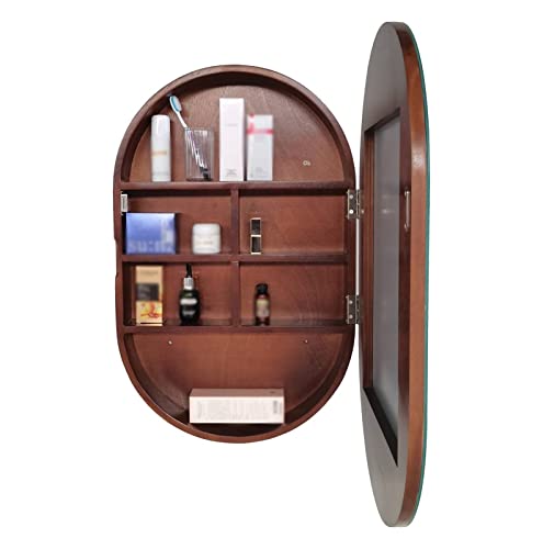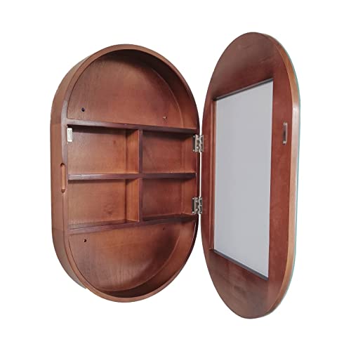 Specchio Contenitore Ovale Specchio Contenitore In Legno Per Bagno Specchio Contenitore Bianco Specchio Cosmetico Con Mensola Contenitore Bagno Con Specchio (Color: Walnut, S: 80x50x14cm)