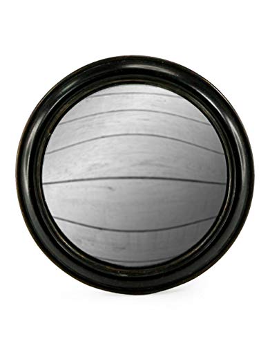 Specchio fisheye, convesso e rotondo, con cornice nera sottile in legno, 23 cm