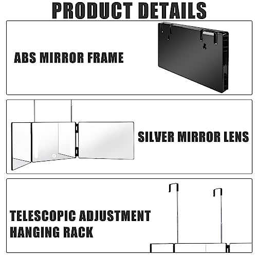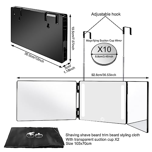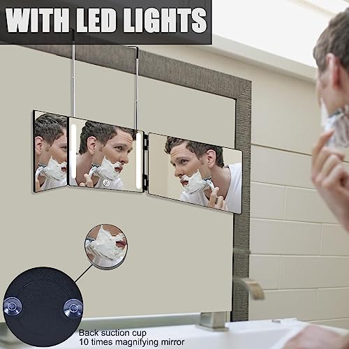 Specchio a 360 gradi con LED: 360 gradi specchio da appendere, specchio da barba con grembiule, specchio a 3 vie con supporti, specchio pieghevole per tagliare i capelli, specchio da appendere