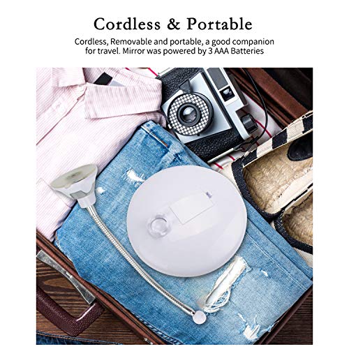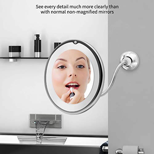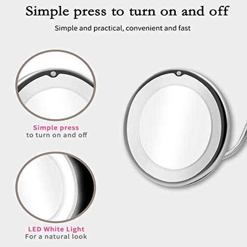 Specchio ingranditore con luce LED Specchio trucco 360 Rotazione Bloccaggio Ventosa Cordless Illuminato Bagno Shaving Specchio Flessibile 10X Ingrandimento Specchio (Bianco)