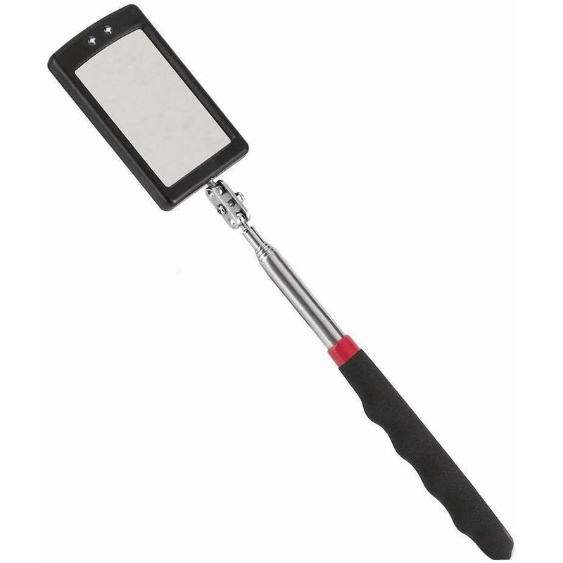 Ampie applicazioni: puoi posizionarli facilmente nelle fessure buie del tuo spazio di lavoro alla ricerca di perdite, rotture, strumenti smarriti, oggetti sotto il divano, dietro il frigorifero, sotto il sedile dell'auto. 2 Extra Luci a LED luminose: lo specchio telescopico ha 2 luci a LED extra luminose per facilitare l'ispezione di aree difficili da vedere e difficili da raggiungere. Testa a doppia sfera girevole a 360 gradi: non solo lo specchio è telescopico e illuminato, è inoltre dotato di un doppio snodo sferico girevole a 360 gradi per ulteriori capacità di visualizzazione. Manico antiscivolo: lo specchio di ispezione è dotato di un'impugnatura in plastica antiscivolo. Scelta perfetta per ispettori: gli specchietti di ispezione sono ideali per utensili, macchinisti, ispettori e meccanici. Tipo di elemento: Specchio di ispezione telescopico Materiale: plastica, alluminio. Colore: come mostra l'immagine. Tipo di sorgente luminosa: LED Tensione: 3-3,2 V. Potenza: 0,5 W, lumen L
