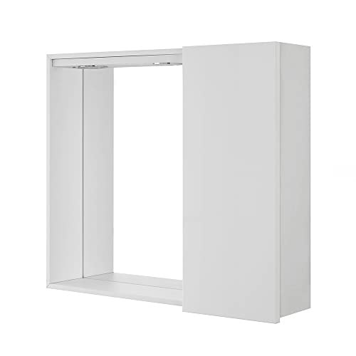 Specchio con mobiletto, Bianco Lucido, a Una Anta, Completo di faretti LED e mensola in Vetro Way