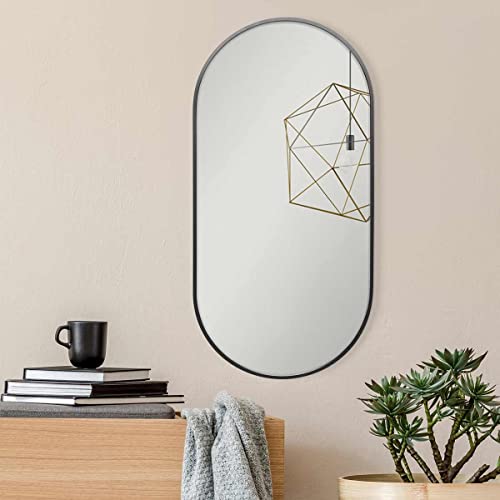 Specchio Ovale Nero con Cornice in Metallo 40x80 cm | Specchio Decorativo da Parete | Specchio Ovale | Specchio Rotondo