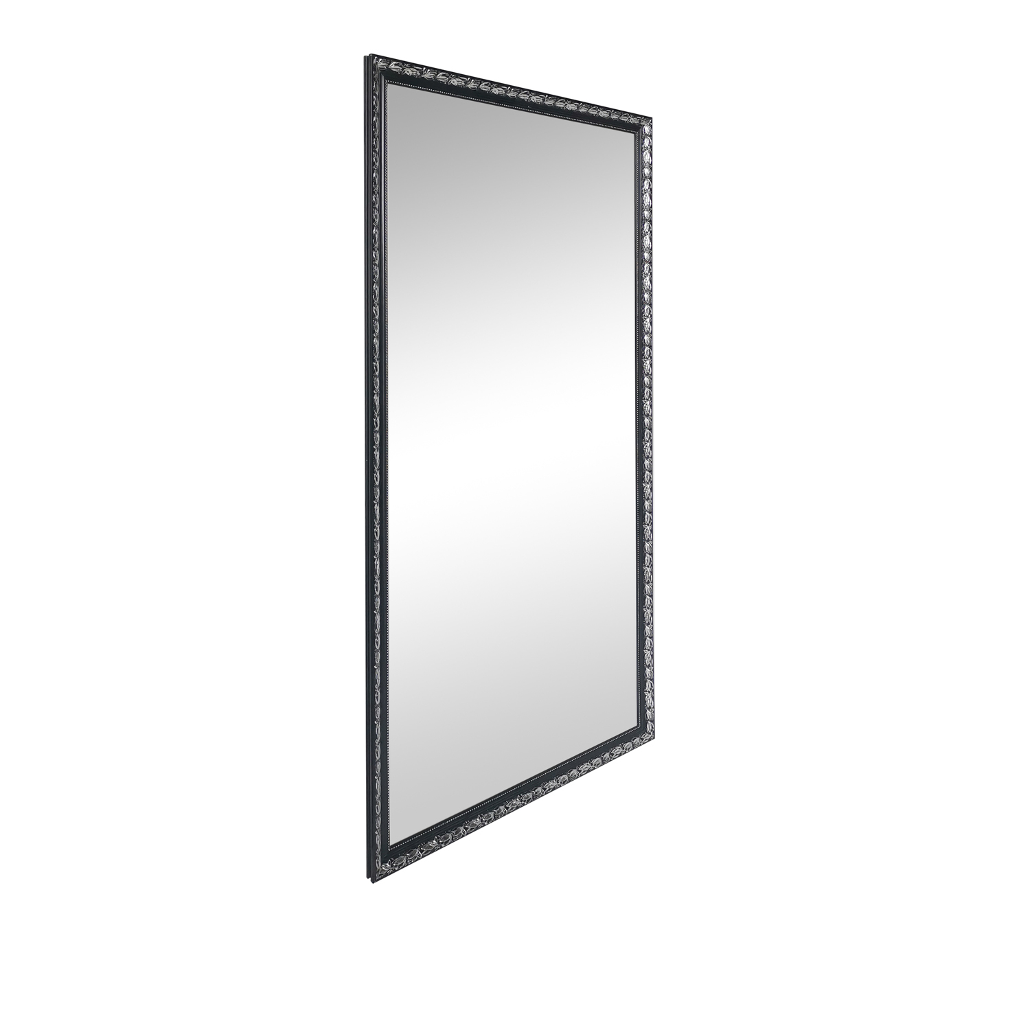 Il grazioso specchio da parete Sonja unisce praticità e stile con la sua cornice in legno e la finitura in nero argento. La cornice finemente lavorata conferisce un'aura di raffinatezza e glamour, mentre la finitura nero argento aggiunge un tocco contemporaneo e sofisticato. Sonja è più di un semplice specchio: è un complemento d'arredo che trasforma lo spazio circostante con la sua presenza incantevole. Grazie alla disposizione dei ganci può essere installato sia in verticale che in orizzontale, adattandosi alla perfezione ad ogni spazio. Dimensioni: 100x200x3 cm.