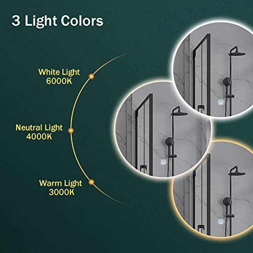 [Eccellente retroilluminazione a led] Può portare un'illuminazione super brillante nel tuo bagno. La luce è disponibile per essere regolata dal 10% al 100% di luminosità, inoltre è possibile selezionare una luce calda 3000K, una luce neutra 4000K o una luce bianca 6000K in base alle proprie esigenze. Illuminazione visiva confortevole, nessuno sfarfallio, nessun UV.