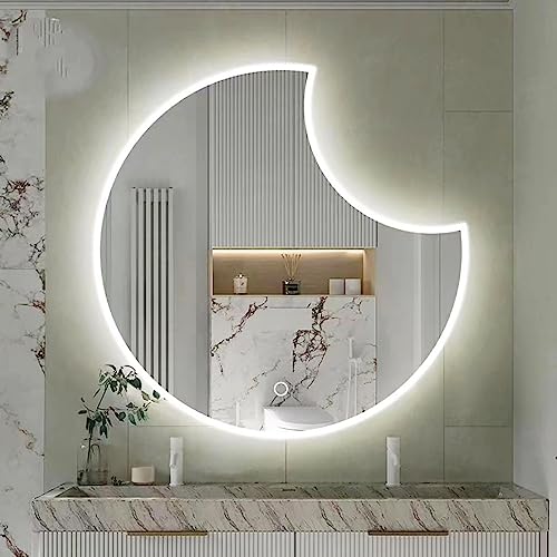 Specchio Da Parete A LED A Forma Di Mezzaluna Irregolare Con Luce, Luce A 3 Colori + Luminosità Regolabile, Specchio Da Bagno Asimmetrico Retroilluminato, Specchio Di Vanità Con Illuminazione HD (Siz