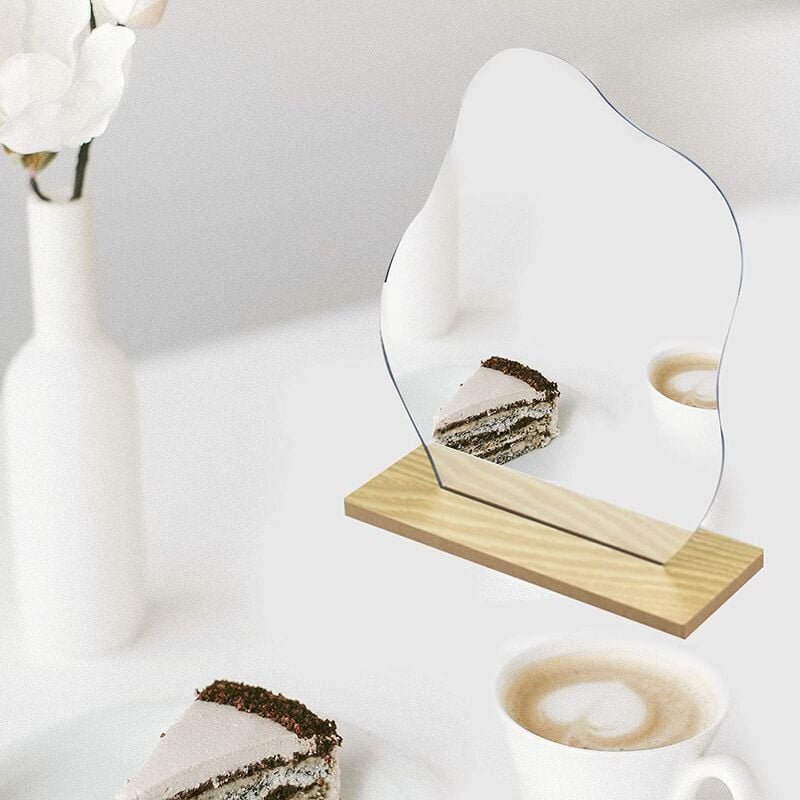 Design accattivante - : Il nostro specchio irregolare ha la forma di una nuvola, che lo rende un arredamento elegante ed estetico per la camera da letto. Le forme irregolari sono più uniche, rendere il sé allo specchio è più bello e bello! 【Qualità premium 】: Il nostro specchio da camera da letto per ragazza su un lato è realizzato in acrilico indurito di alta qualità, non fragile. Il retro dello specchio sagomato è realizzato in cartoncino bianco. La base è realizzata in legno composito di alta qualità. 【Facile da installare 】: Basta inserire il simpatico specchio nella base in legno quando viene utilizzato, è uno specchio estetico. la dimensione dello specchio deformato è di circa 24 * 20 cm. 【Ampio utilizzo 】Questo specchio minimalista può essere posizionato in camere da letto, uffici, hotel e bagni per il trucco, perfetto per applicare il trucco, lavarsi i denti, usare il filo interdentale, decorare camere da letto e altro . Questo specchio acrilico per negozi all'aperto è allo