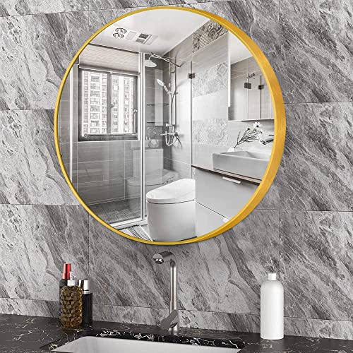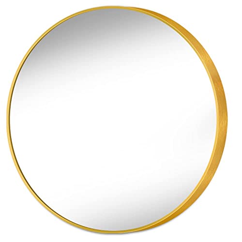 Specchio rotondo da parete circolare per ingressi, bagni, salotti, specchio rotondo in metallo per parete (oro, 60 cm)