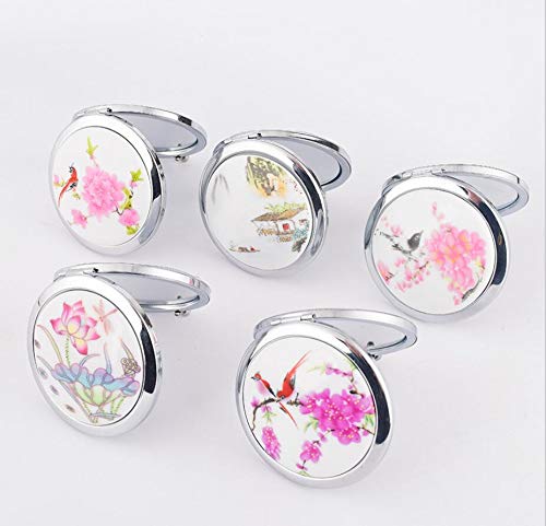 Specchio tascabile per donne ragazze piccolo specchio tascabile formato ingranditore Compack trucco doppio specchio ceramica cinese design tradizionale borsa da viaggio specchio blu e bianco porcellana