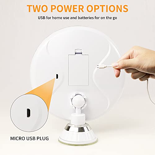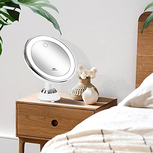 Specchio trucco con luci ingrandimento 10X Specchio da trucco touch screen con luminosità del LED regolabile,specchio da trucco ventosa batteria e funzionamento USB (USB)