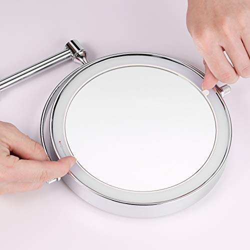 allungabile e Girevole a 360° Lo specchio trucco da parete con luci è dotato di braccio estensibile con rotazione di 360 gradi. Molto facile da trovare l'angolo di visione adatto per il trucco, spremere, radersi e indossare lenti a contatto, ecc. Quando non lo usi, puoi piegarlo per risparmiare spazio!