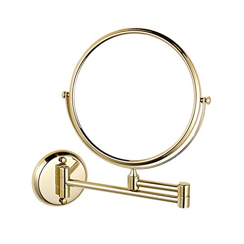 MRJ Specchio Trucco da Parete 8 Pollici Allungabile Specchio Bagno Trucco Specchio Ingranditore da Parete 360 ° Girevole Rotondo Doppio Finitura Oro per Trucco o Barba