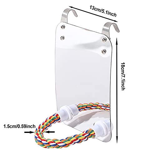 Materiale di qualità: lo specchio per uccelli è realizzato in acrilico antiruggine e ispessito per una maggiore sicurezza e durata. La corda di cotone è anche robusta e lunga durata. Rende i tuoi uccelli più sicuri quando giocano.