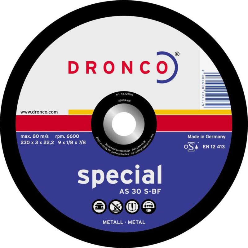 Alta durata e stabilitá del taglio, lavora economicamente sui profili,tubi e materiali completi Diametro 350mm, foro 25,4mm, spessore 3,5mm per metallo,acciaio da costruzione,ghisa max. NUMERO GIRI 5500 U/min, per stazionario macchine Ottima sega a disco per l ́uso impegnativo Dronco SPECIALE metall-schneiden metallo as30s 350 x 3,5 x 25,4 mm - alta durata e stabilitá del taglio, lavora economicamente sui profili,tubi e materiali completi - Diametro 350mm, foro 25,4mm, spessore 3,5mm - per metallo,acciaio da costruzione,ghisa - max. NUMERO GIRI 5500 U/min, per stazionario macchine - Ottima sega a disco per l ́uso impegnativo