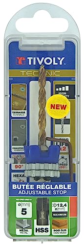 Kit speciale terrazzo brevettato da TIVOLY composto da un trapano HSS 5mm con gambo esagonale intercambiabile per forare e smussare a 90 legno duro, acciaio, alluminio, ghisa e plastica per un uso intensivo e ripetitivo + fresatura noce e arresto regolabile. Include una chiave per cambiare rapidamente il trapano senza vincoli. Montato su adattatore esagonale da 1/4" per caccia. Prodotto professionale di alta qualità