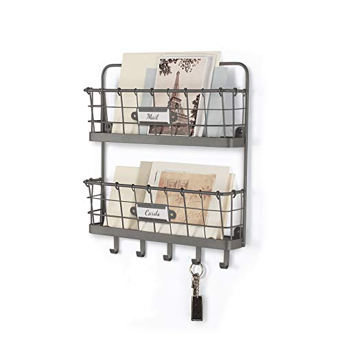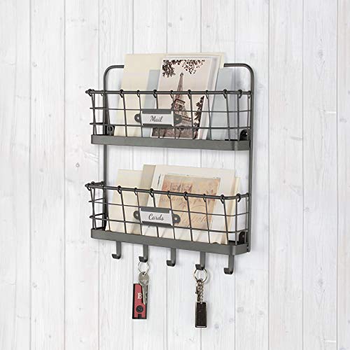 Spectrum Diversified Cassetta delle lettere con ganci, in stile rustico, da parete, con portachiavi, in acciaio, colore grigio industriale, taglia unica